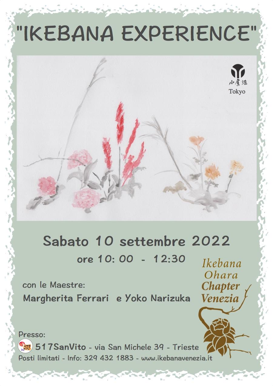 nel giardino dello studio 517SanVito, sotto le mura medioevali del Castello di S.Giusto. Un’occasione per avvicinarsi all’antica arte giapponese di disporre i fiori, capirne il significato profondo che è anche stile di vita, con l’emozione di poter provare a realizzare da soli una composizione.